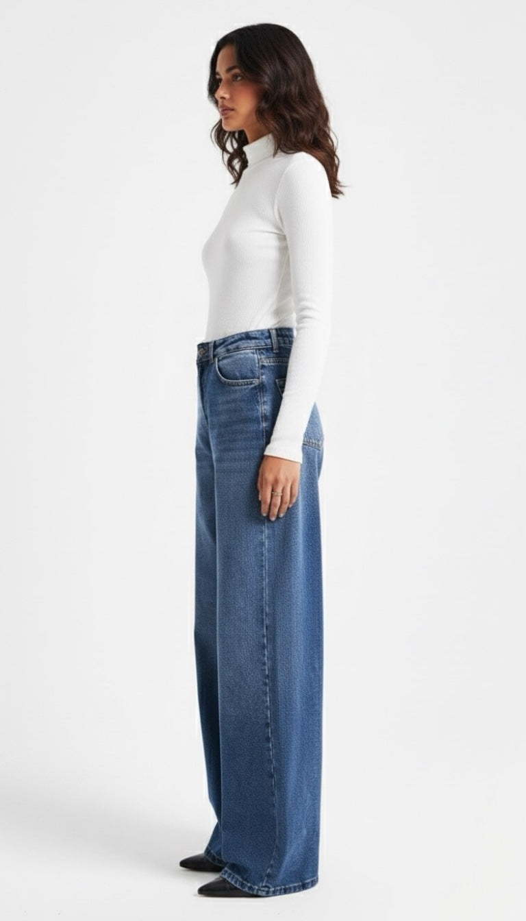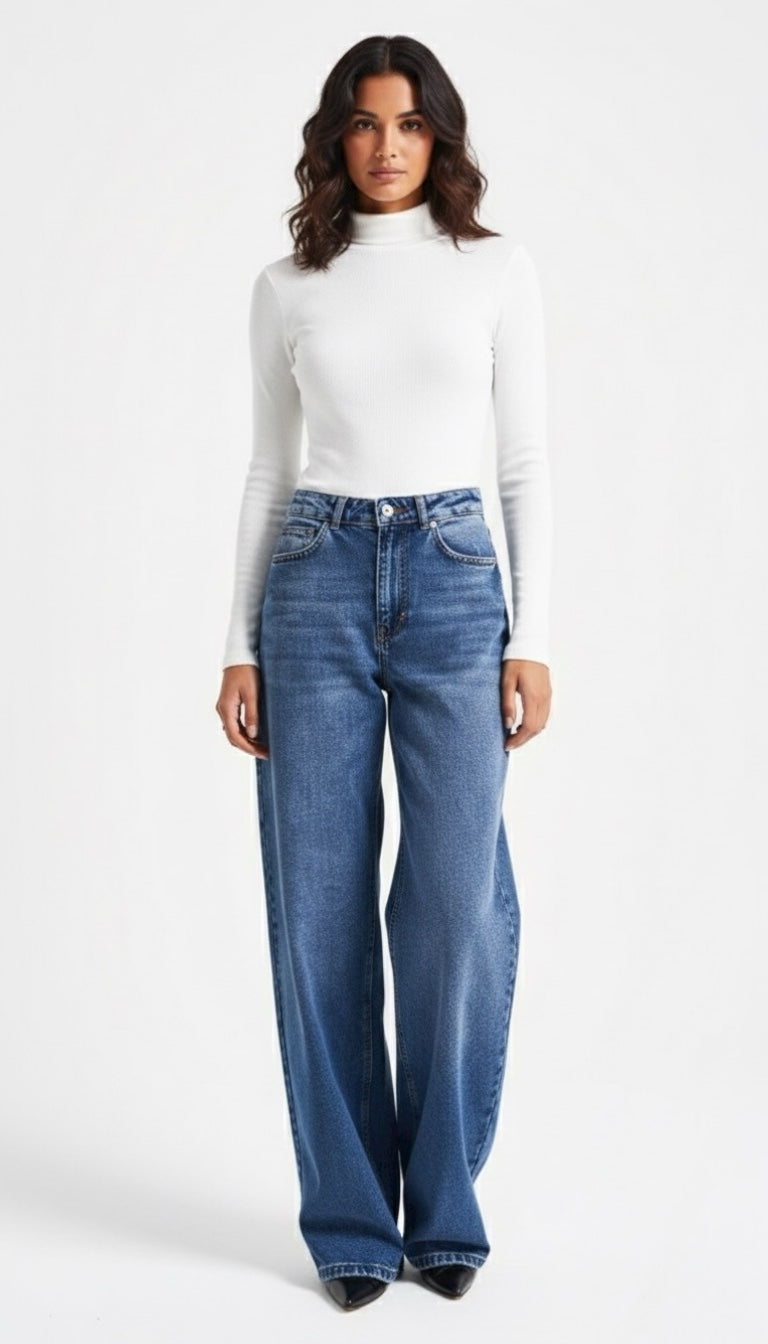Elevate your everyday look with our Super High-Rise Skater Jeans, crafted from 100% cotton denim for that authentic, structured feel. Designed with a flattering super high waist, wide straight-through legs, and a mid-blue vintage wash — these jeans deliver a clean, effortlessly cool skater silhouette that never goes out of style.